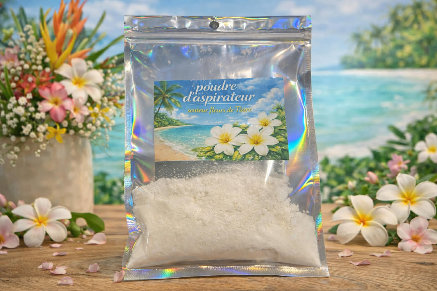 Poudre d’aspirateur senteur : fleur de tiaré